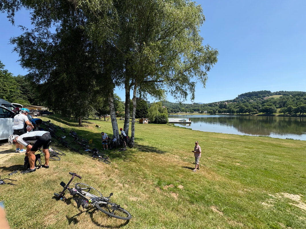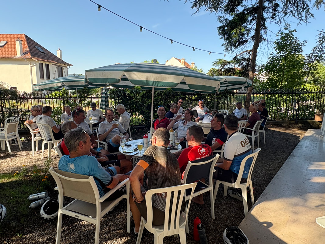 Bon il faut chaud – 34° ou 36° pas grave on est souvent dans la verdure ou dans l’ombre. Mais c’est bosselé. Les parcours accomplis par les 5 groupes c’est environ 95 km et 1335 m de dénivelé positif. Les plus costauds feront 100 km avec 1600 m de dénivelé.