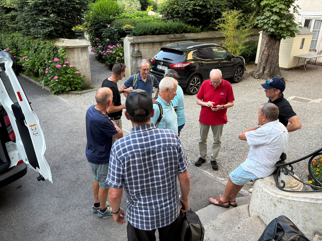 Pour notre groupe c’est vers 06h30 que les premiers arrivent au petit-déjeuner, c’est tôt pour un dimanche. Mais on est pressé de rentrer à la maison, et nous souhaitons aussi profiter de la fraicheur pour les premiers km, même si c’est en voiture. Nos vélos ont déjà été chargé hier, plus que les chambres à restituer, charger nos bagages et c’est pile à l’heure que nous prenons la route vers Bulle. Voyage sans histoire avec notre chauffeur expérimenté. Peu de trafic sur France, mais bien plus entre Genève et Lausanne.
