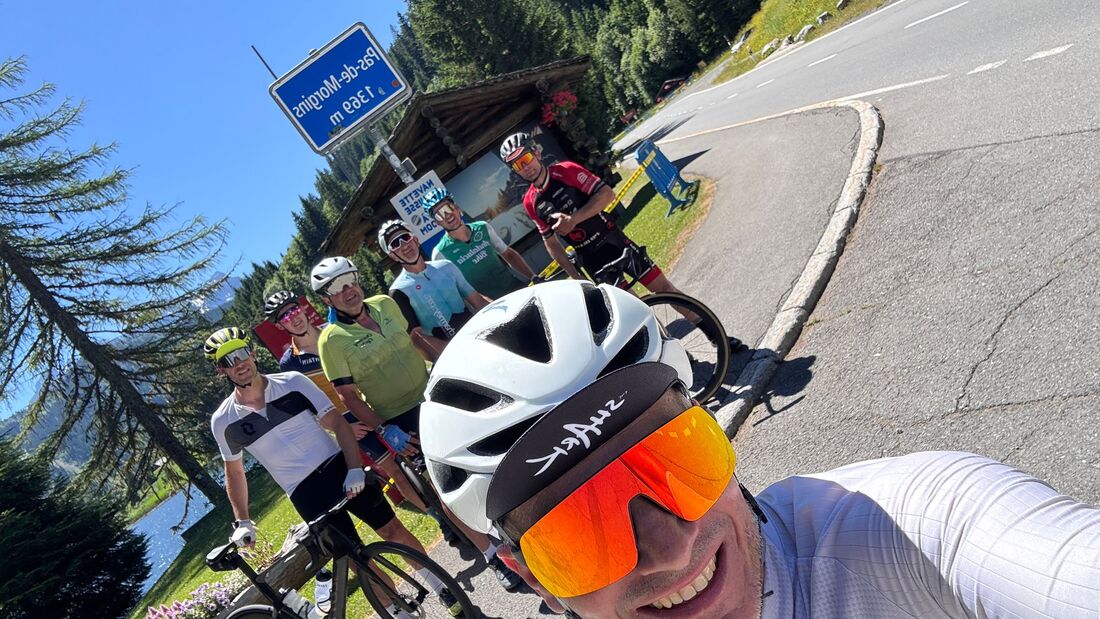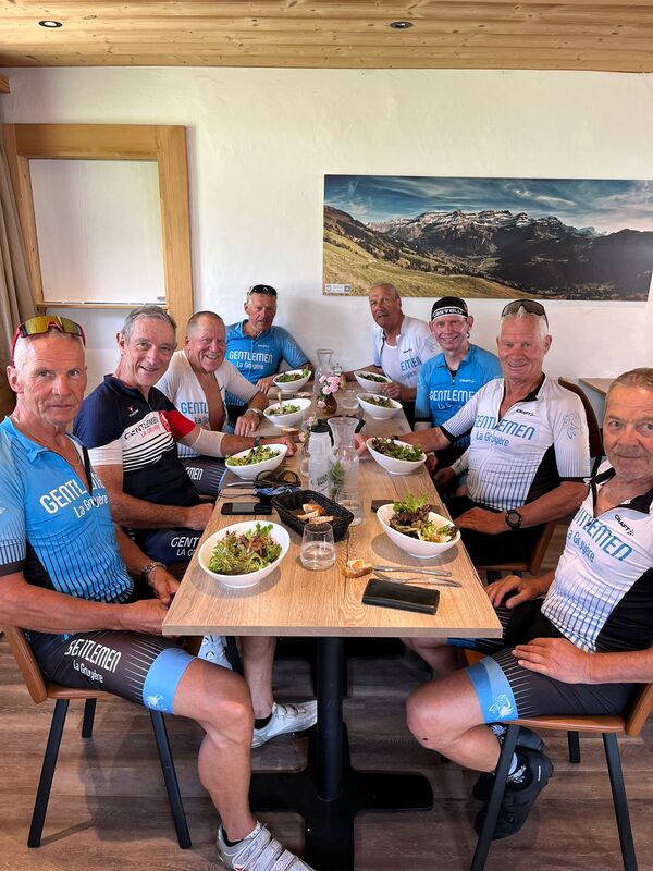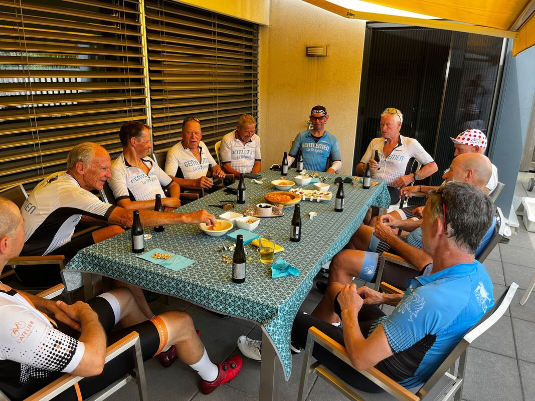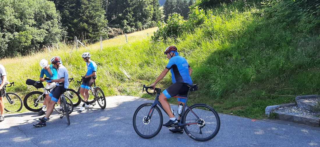 Même si beaucoup de cyclos sont en Corse ou à travers les Alpes, c’est deux jolis groupes qui se rejoignent aux Diablerets pour la sortie (ou les sorties) de notre cher président.